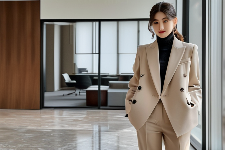 - 专业的套装:选择剪裁合体的套装,颜色以中性色为主,如黑色、灰色或深蓝色。