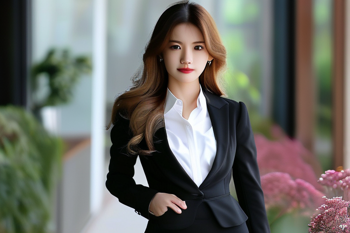 正装套装:对于女性来说,正装套装是职场中的必备单品,选择一套合身、剪裁得体的套装,颜色以深色为主,如黑色、深蓝色或灰色,展现出专业和稳重的形象。